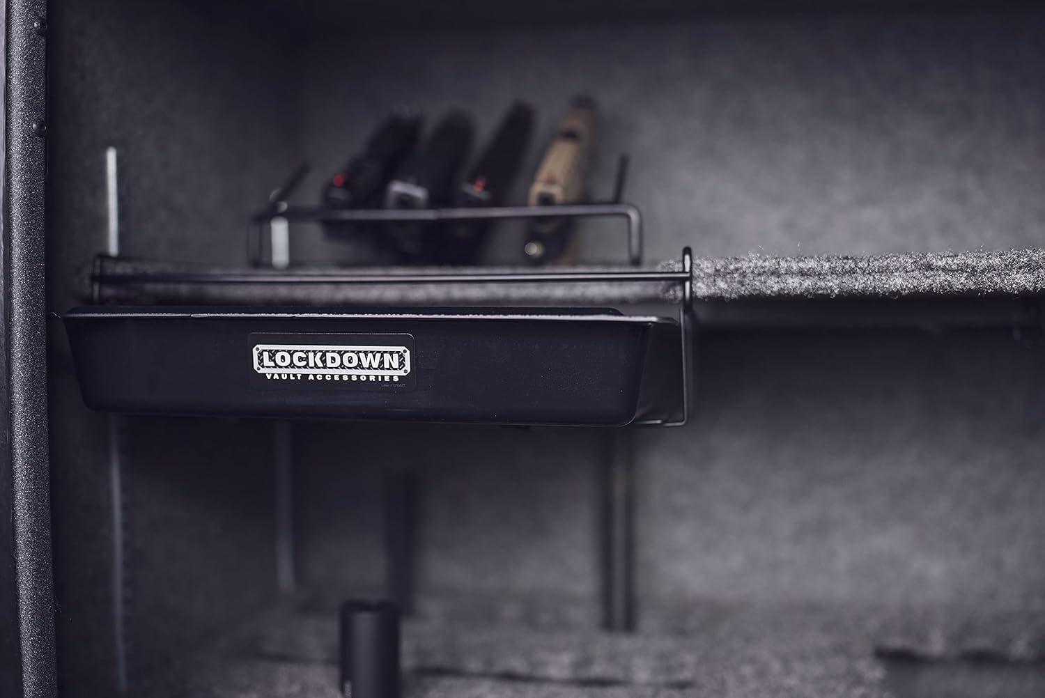 The Lockdown Vault Drawer mounts underneath a vault shelf to instantly add previously unused space. Perfect for storing a variety of valuables and documents or whatever other miscellaneous items lay scattered within your safe.