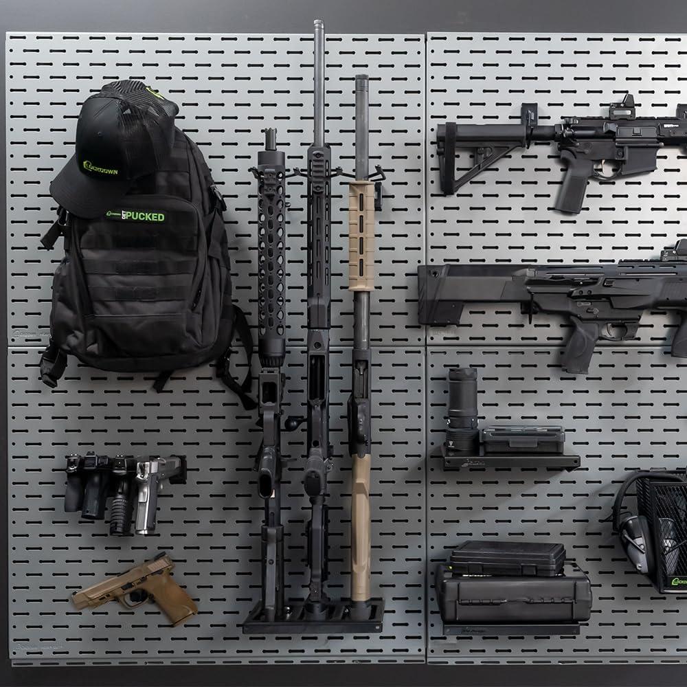 DIMENSIONS: 24 In (60.96 cm) L X 32 In (81.28 cm) W x .75 In (1.90 cm) D weighs 17.46 lbs. (7.91 kg) strong enough to hold up to (200) lbs. Hold multiple firearms of all weights and sizes in multiple configurations