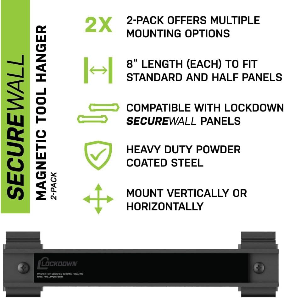 Lockdown Securewall Magnetic Knife & Tool Hanger 2 Pack with 8″ Magnet, Heavy-Duty Steel, Securewall Compatible, for Gun Storage and Organization