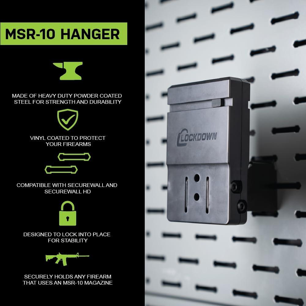 Lockdown Securewall MSR10 Hanger with Securewall Compatible Design and Simple Setup for Organization, Gun Storage, Gun Room